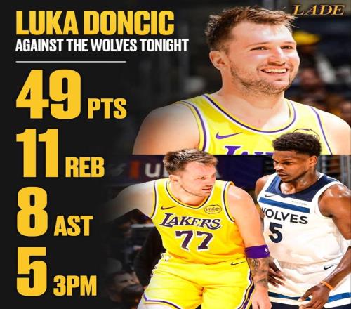 回顾本场比赛,湖人不少球员都发挥出色,里夫斯25分7篮板11助攻,八村垒23分2篮板,艾顿15分8篮板,全面开花的湖人内外兼修,让森林狼难以招架。而要说道本场比赛湖人获胜的首功之臣,无疑是还是东契奇,全场比赛,东契奇出战34分钟,23投14中,其中三分球12投5中,罚球19投16中,得到49分11篮板8助攻。