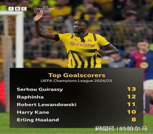 吉拉西有喊冤的资格。他是2024-25赛季俱乐部赛事中进球最多的非洲球员,他缔造了多特蒙德球员单赛季欧冠进球纪录,尤其是单赛季欧冠对阵巴萨一共打进5球的壮举很难被轻易复制,事实上欧冠历史上对阵巴萨上演过帽子戏法的球员也只有5人。