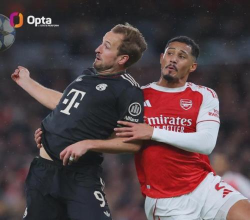Opta统计,本赛季拜仁每场比赛都能进球2+,直到本场比赛遇到阿森纳,并且拜仁以下数据全部创造了本赛季最低:8脚射门,预期进球0.69,对方禁区内13次触球。