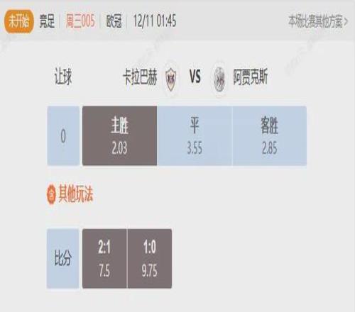 竞足 周三005 欧冠卡拉巴赫VS阿贾克斯