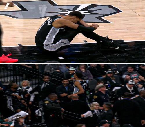 需要说的是,文班亚马在第四节开局的一次抢板中遭遇了膝盖过度伸展,然后坐在地上休息了很长时间,随后在没有队友搀扶下踉踉跄跄走回更衣室。