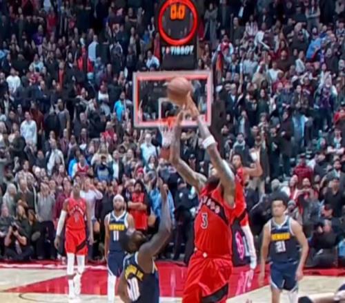 莺歌30+8绝平三分超时无效!约基奇伤停掘金险胜猛龙巴恩斯三双