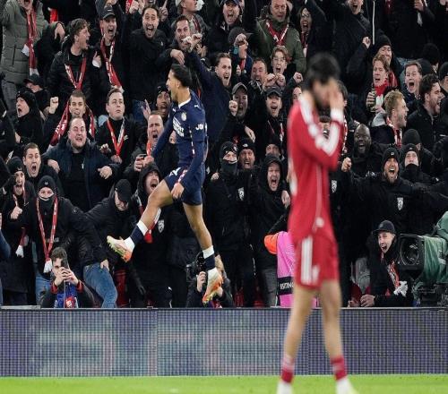 利物浦第二次在欧冠主场丢4+球,上一次是2023年25皇马